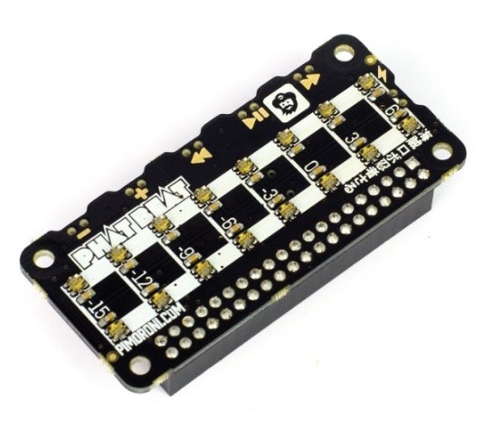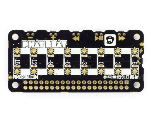 - Features : dual I2S DAC/amplifiers for stereo audio (MAX98357A) 3W per channel 2x push fit speaker terminals DIP switch to select blended mono or stereo modes 16 RGB LED pixels (APA102) in 2 rows of 8 6 edge-mounted push buttons pHAT BEAT pinout Compatible with Raspberry Pi 3B+, 3, 2, B+, A+, Zero, Zero W Software installer and ALSA VU meter plugin Python library Female header requires soldering Dimensions: 65x30x7.5mm