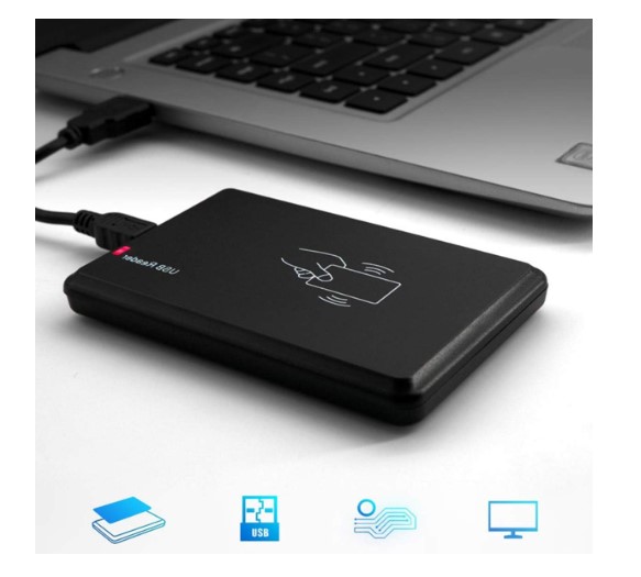 13.56MHz USB Proximity Sensor Smart RFID IC Card Reader is an RFID 13.56MHz IC reader, reading distance up to 8cm, which is widely used for RFID radio frequency identification system and projects, such as automated parking management, personal identification and production access control. This RFID card reader can read RFID card serial number and output to your computer according to the specified format, then management software derives many more functions. Installation steps: Connect with a computer through the USB cable inside. Open notepad or a word document. Put the card on the top of the reader. The document will output card number automatically.