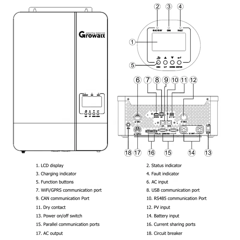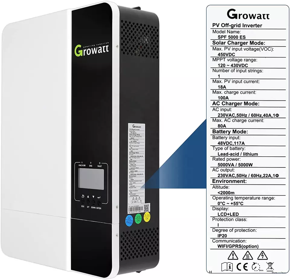 Growatt home solar pv inverter SPF 5000 ES single phase off-grid 5kva solar power inverter, with wifi